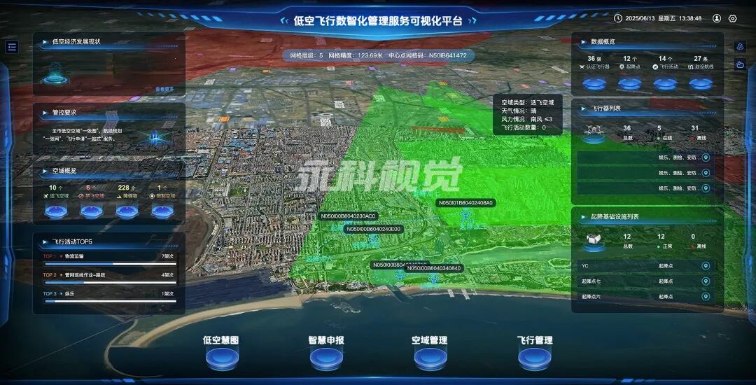 同时,也为空管部门提供更直观的可视化分析工具和多维度决策支持。让空管人员能够直观掌握空域全貌,为智能化低空空域管理提供创新工具。